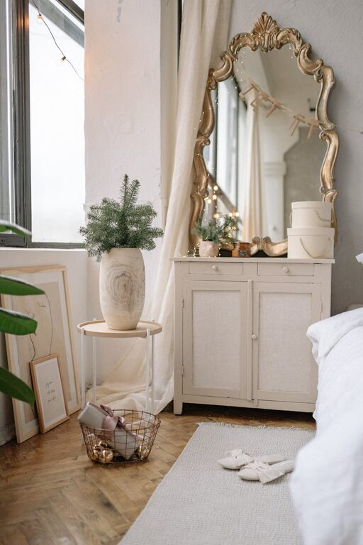 Add curtains, throw blankets, and cushions in calm shades to tie the room together. These elements are also easy to change if you want a refresh later.